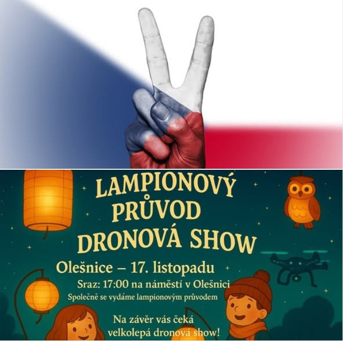 Z důvodu nepříznivého počasí bude dnešní lampionový průvod s dronovou show přesunut nejspíše na pátek 21. listopadu (přesný čas Vám ještě oznámíme). Přesto Vás zveme, abyste dorazili dnes v 17:00 na náměstí s lampiony, odkud společně vyrazíme k památníku u školy, kde si připomeneme Den boje za svobodu a demokracii a Mezinárodní den studentstva.