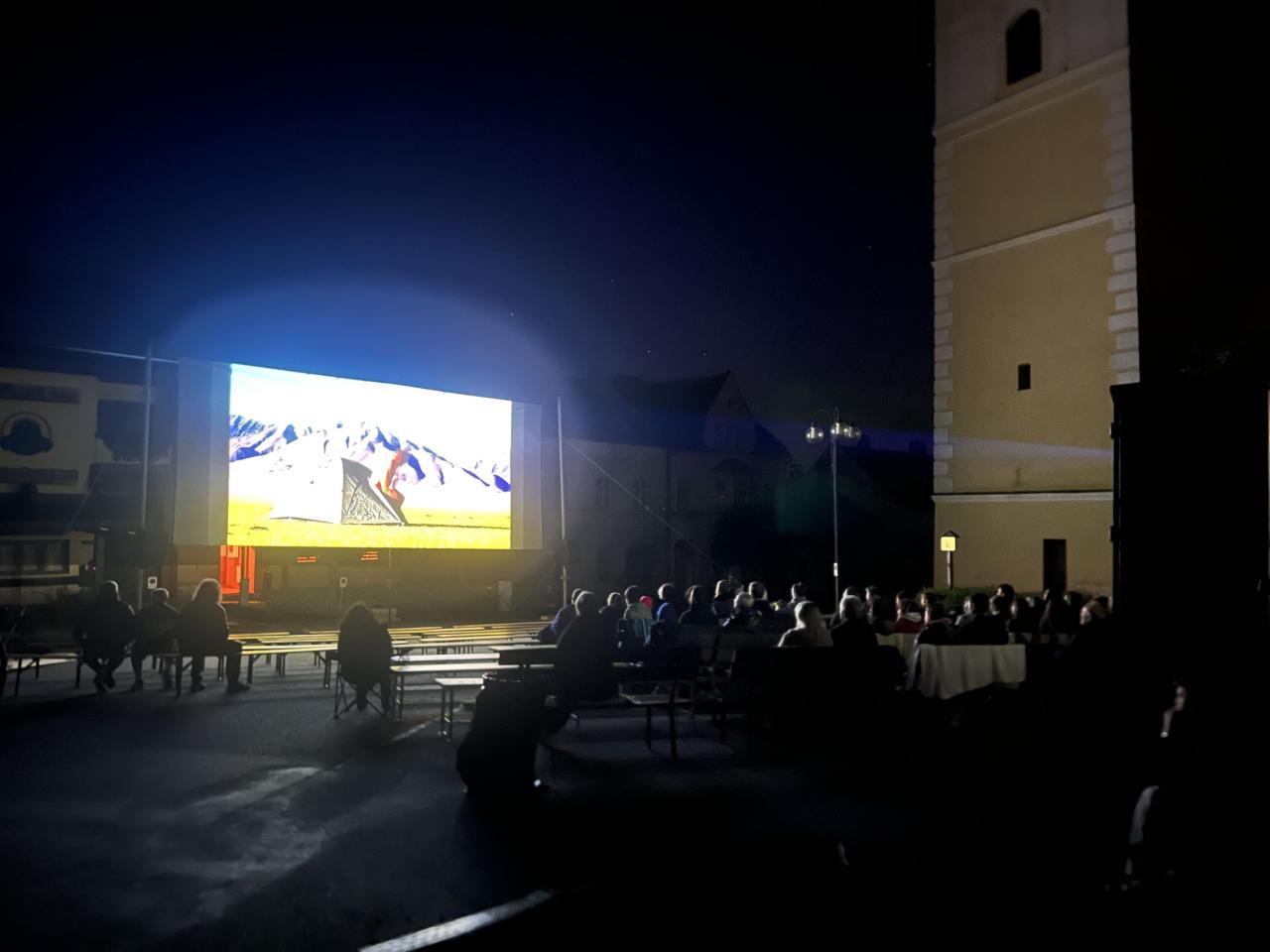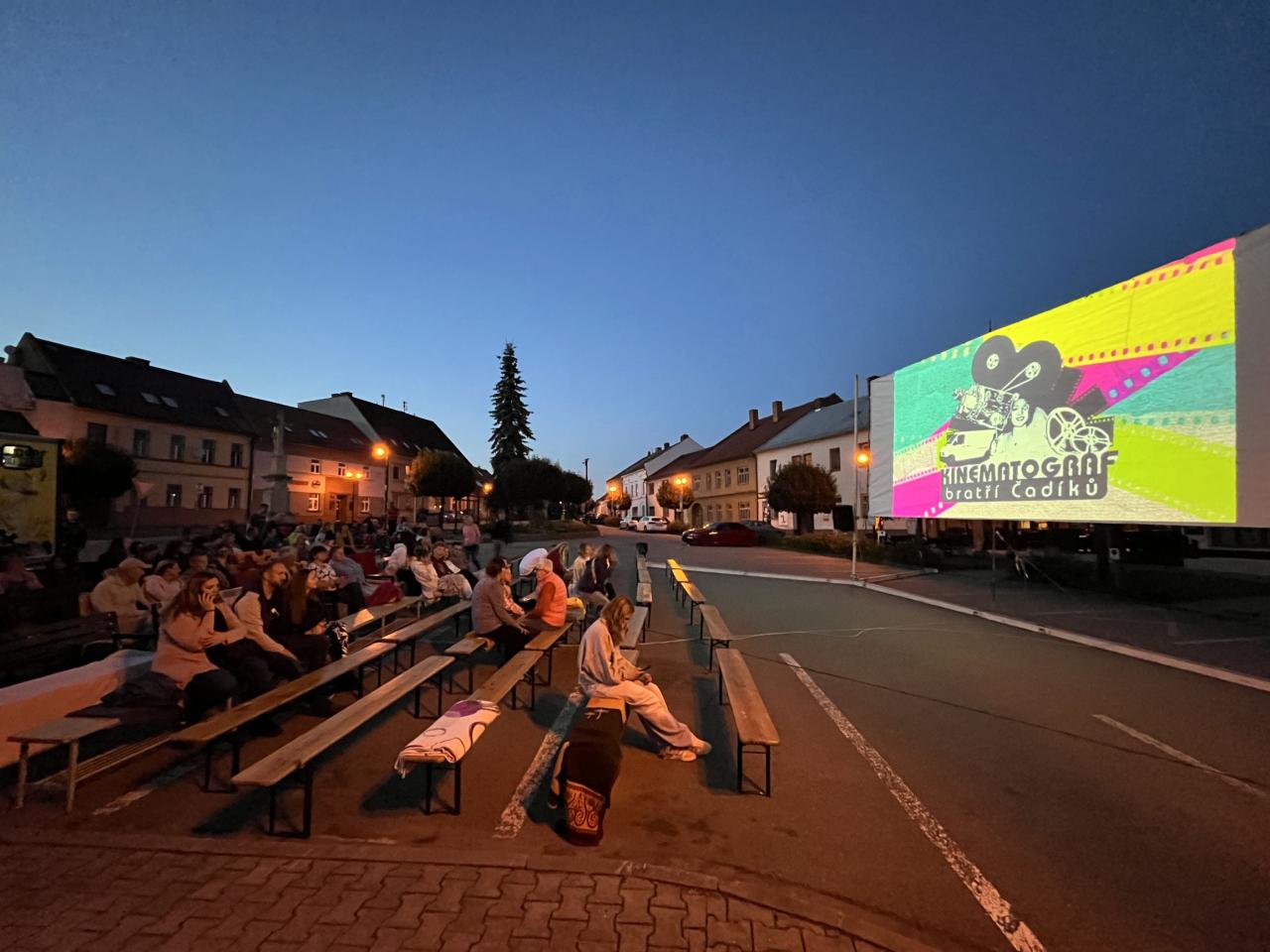 Fotografie z promítání Kinematografu bratří Čadíků ve dnech 19.-22. 7. 2025.