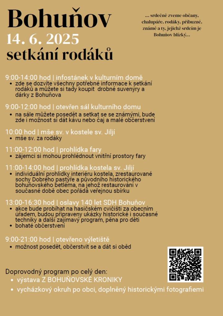 Obec Bohuňov srdečně zve na setkání rodáků.