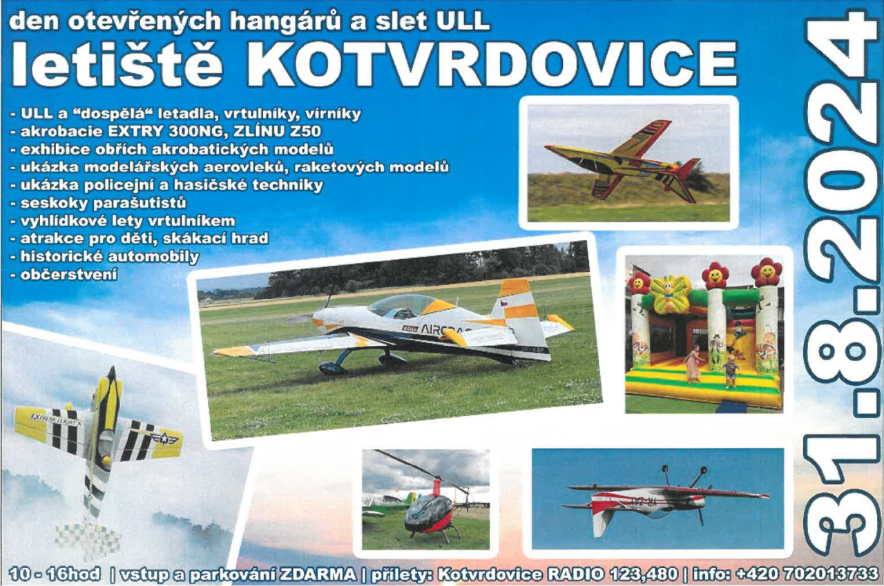 Stalo se již tradicí pořádat na letišti v Kotvrdovicích letecký den. V letošním roce pořádáme slet ULL letadel – setkání pilotů a příznivců ultralehkého létání spojený se dnem otevřených dveří na letišti v Kotvrdovicích.