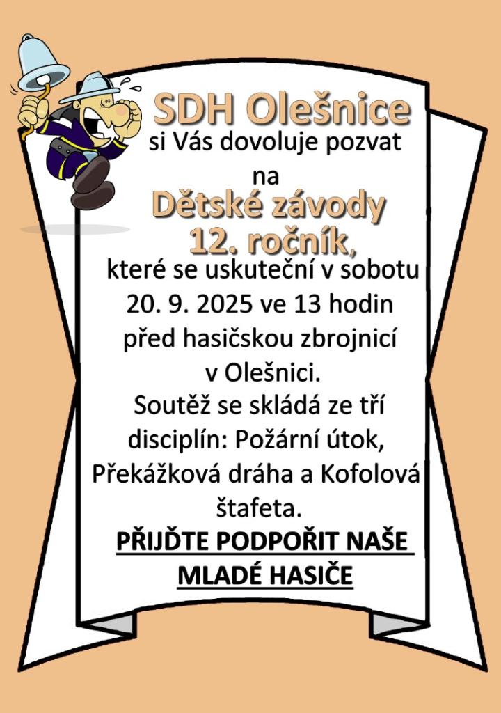 Sbor dobrovolných hasičů Olešnice Vás zve na Dětské závody.