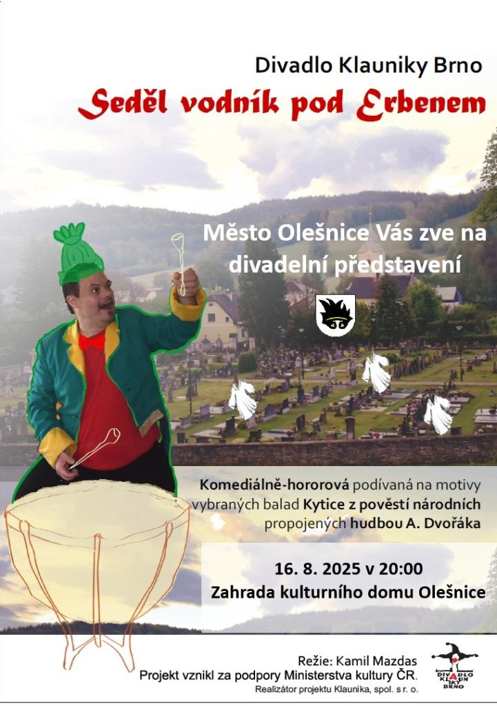 Město Olešnice Vás srdečně zve na divadelní představení Seděl vodník pod Erbenem – komediálně-hororovou podívanou na motivy vybraných balad Kytice z pověstí národních propojených hudbou Antonína Dvořáka.