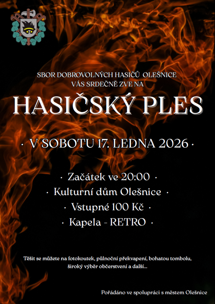 Sbor dobrovolných hasičů Olešnice Vás srdečně zve na tradiční Hasičský ples, který se uskuteční